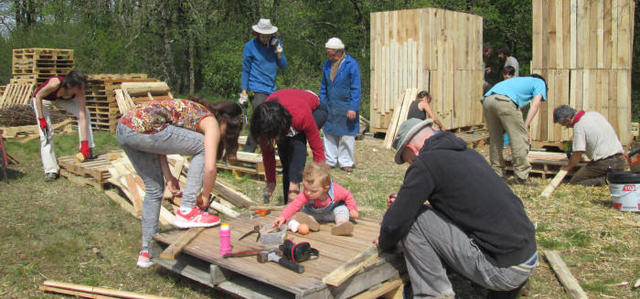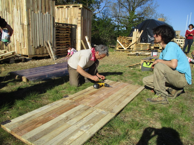 Grâce à l'incroyable préparation de Thomas, Florent et Alex de Bul'de Mômes (merci à eux!), et au soutien de l'équipe de Pôle 21 (Fabien, Jérémie, Claire, Julien, Vincent, etc), une bonne cinquantaine de personnes sont passées sur ces trois journées (27, 28 et 29 avril) : prénoms de qq enfants de jeudi et vendredi, Mathieu, Christiane, Patou, Maud, Anaïs, Thierry, Marianne, Lilia, Gildas, Naonis, Basile, Céleste, Dominique, Raphaël, Natacha, Noa, Zéphir, Magali, etc. Les deux premiers jours, le chantier a accueilli des enfants de l'IME de Bléré et Chinon. L'occasion de leur faire découvrir l'utilisation de palettes pour fabriquer de belles douches, et aussi de leur apprendre à débroussailler avec des machettes. Exercice qui a particulièrement plu !